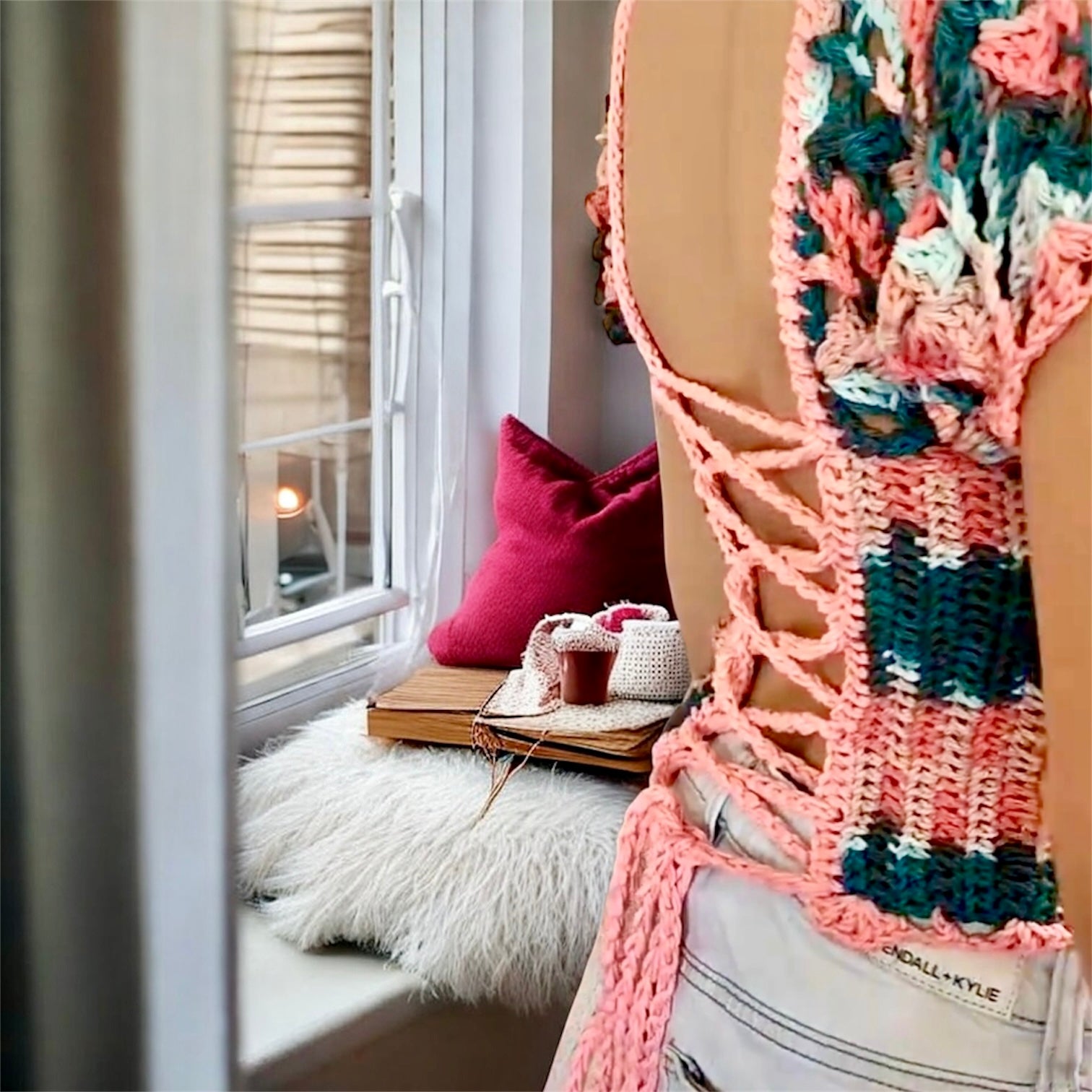 Top con mangas y abertura sexy en el busto. diseño que realza tu figura, cómodo y adaptable gracias a su hilo de algodón premium. Esta hecho con hilo multicolor por lo que el patrón de colores puede variar.